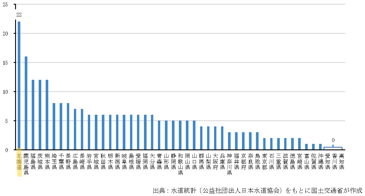 - 「水道カルテ」は、公益社団法人日本水道協会が発行する「水道統計(令和4年度)」をもとに国土交通省が作成