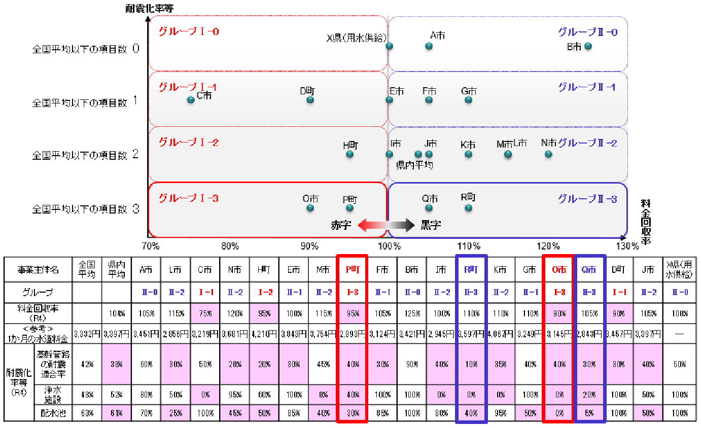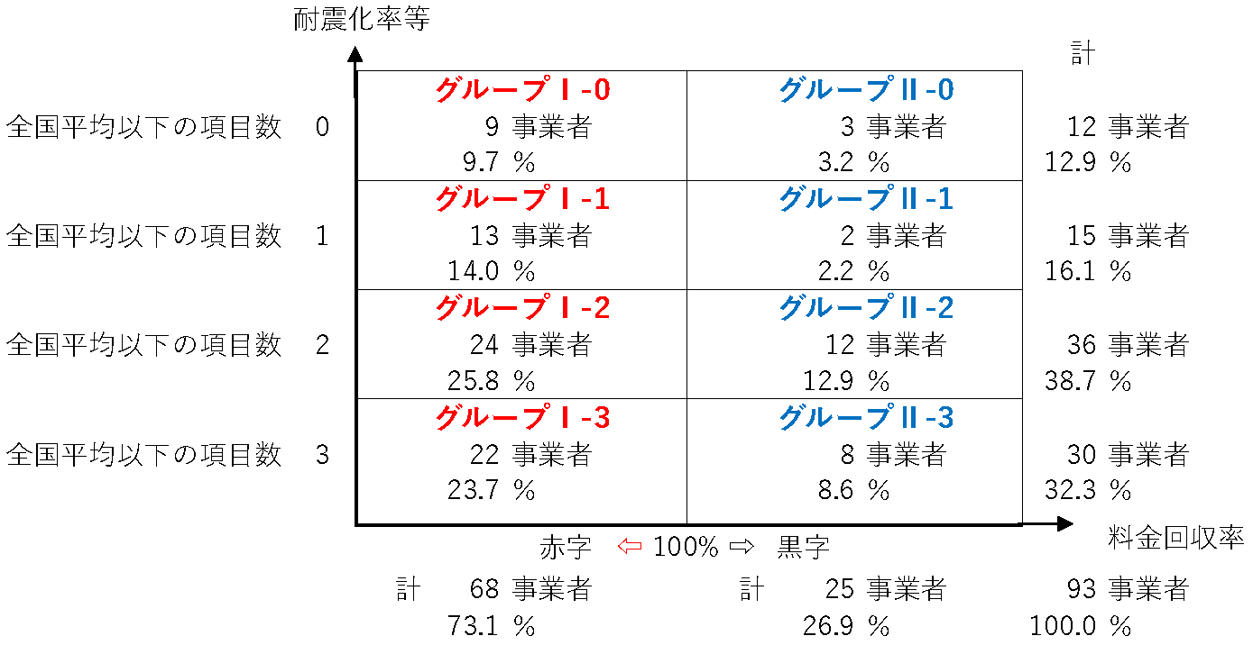 - 料金回収率100%未満の水道事業者等をグループⅠ